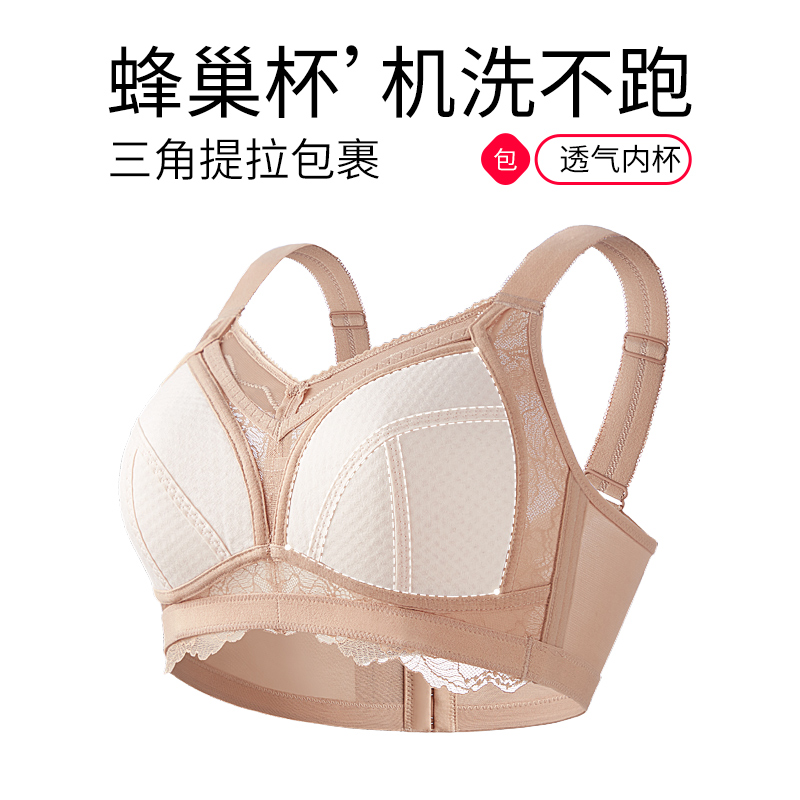 千奈美大胸显小内衣全罩杯薄款 防下垂无钢圈全包收副乳调整型文胸