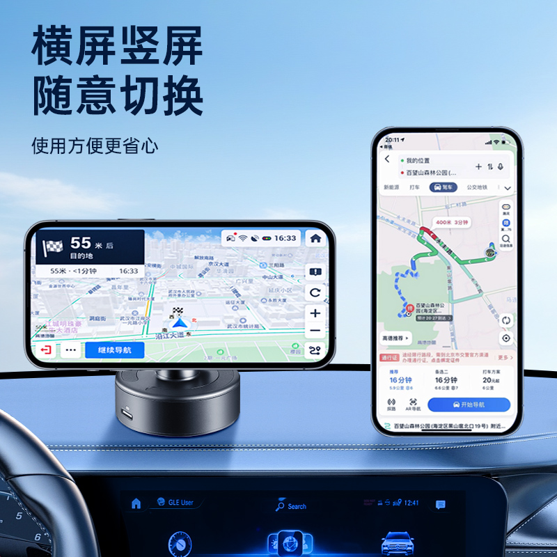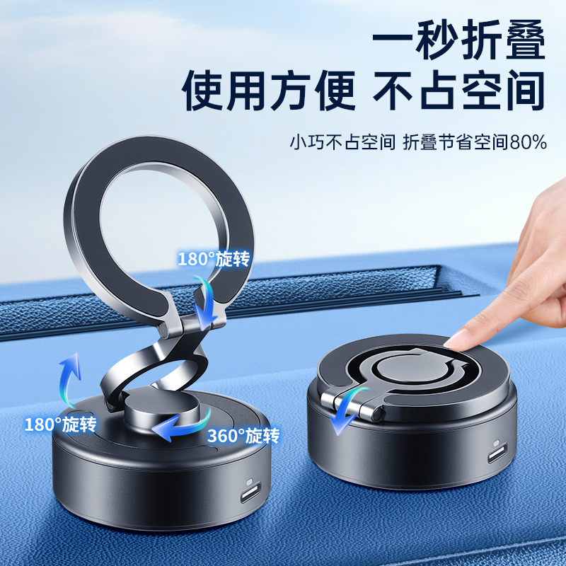 2025新款 电动真空吸附磁吸手机架汽车内吸盘感应折叠支架导航专用