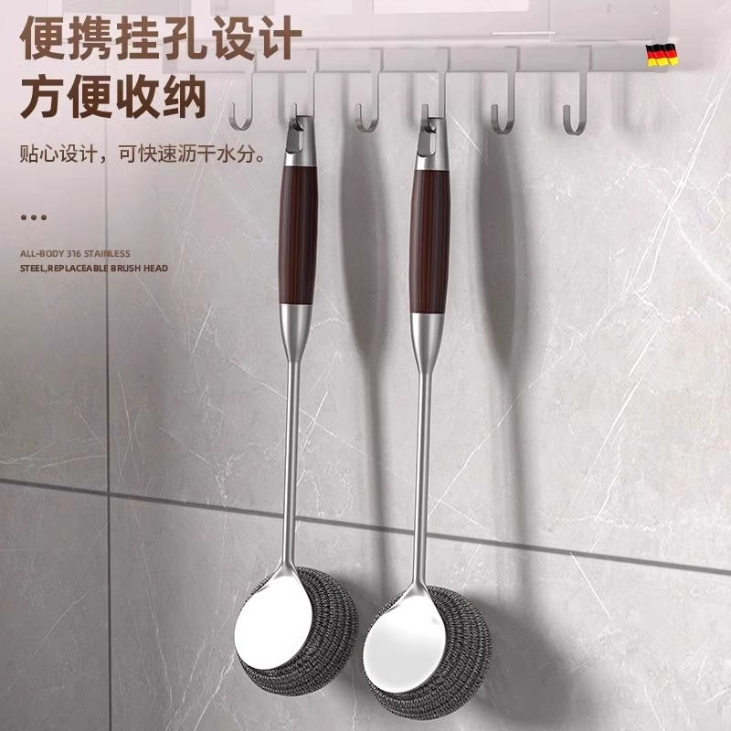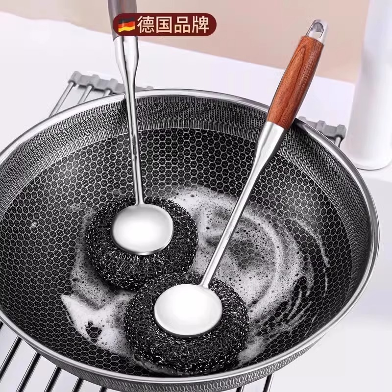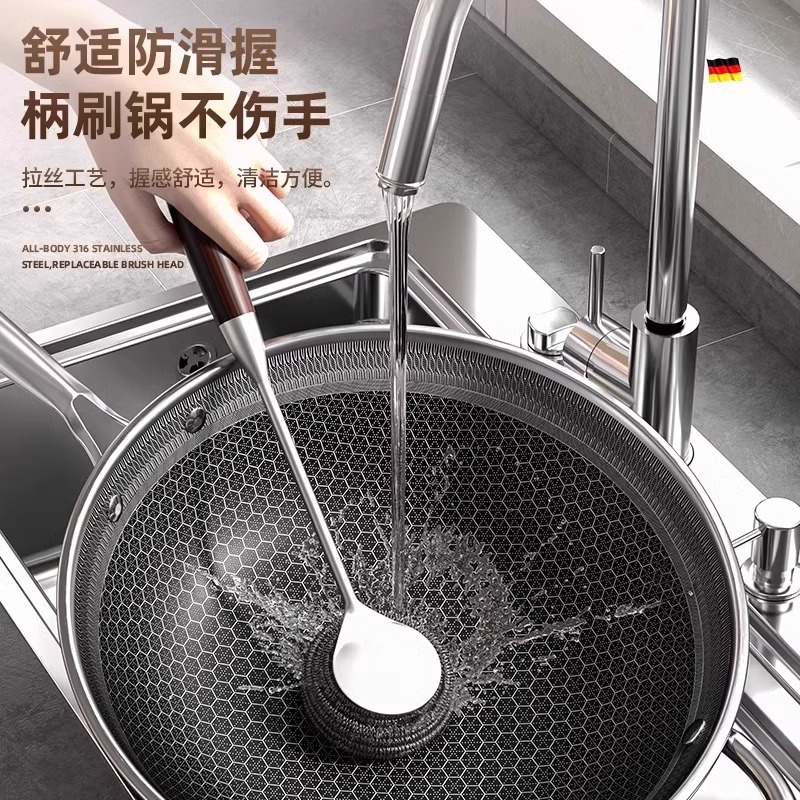 家用不锈钢锅刷厨房专用不伤锅刷锅神器长柄洗锅刷钢丝球清洁刷子