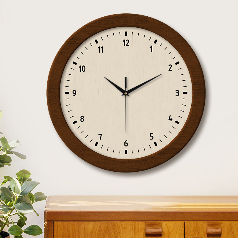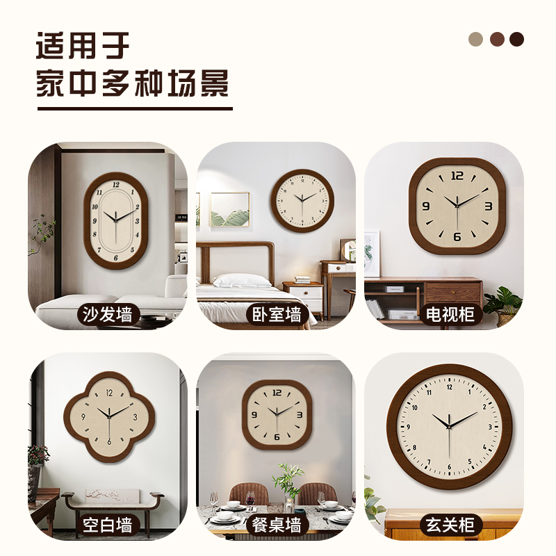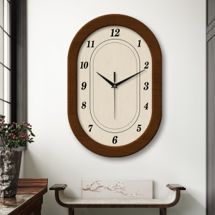 精梭原木中古风经典 饰挂钟创意网红免打孔家用时钟表 简约客厅装