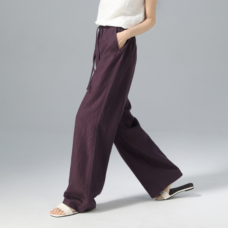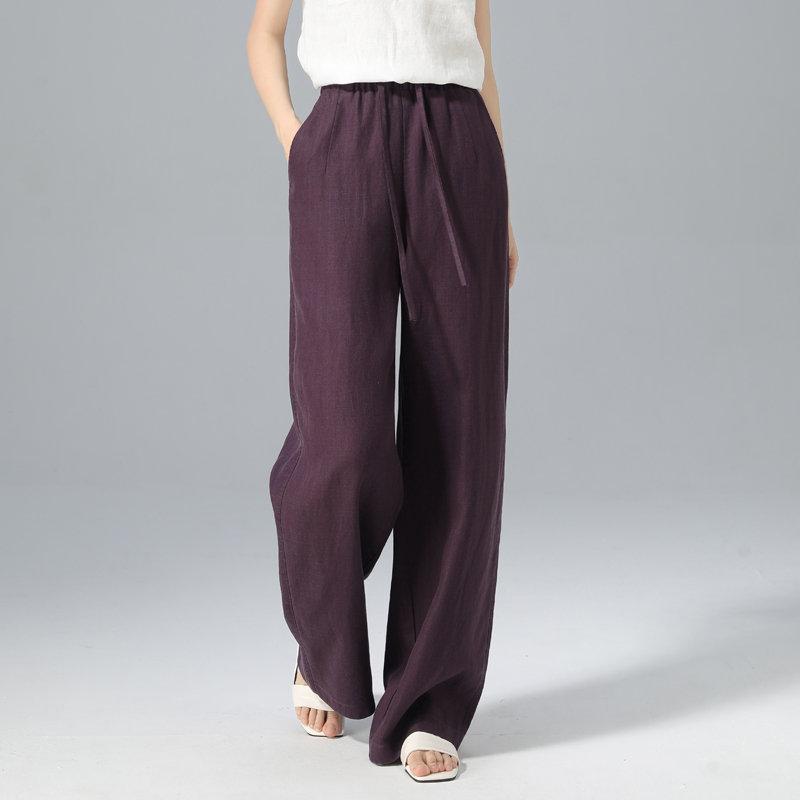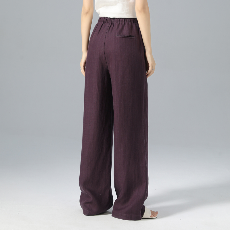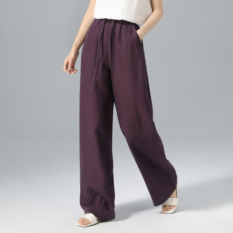 女夏季 夏紫色裤 薄款 高腰显瘦宽松直筒裤 子 2025新款 天丝亚麻阔腿裤