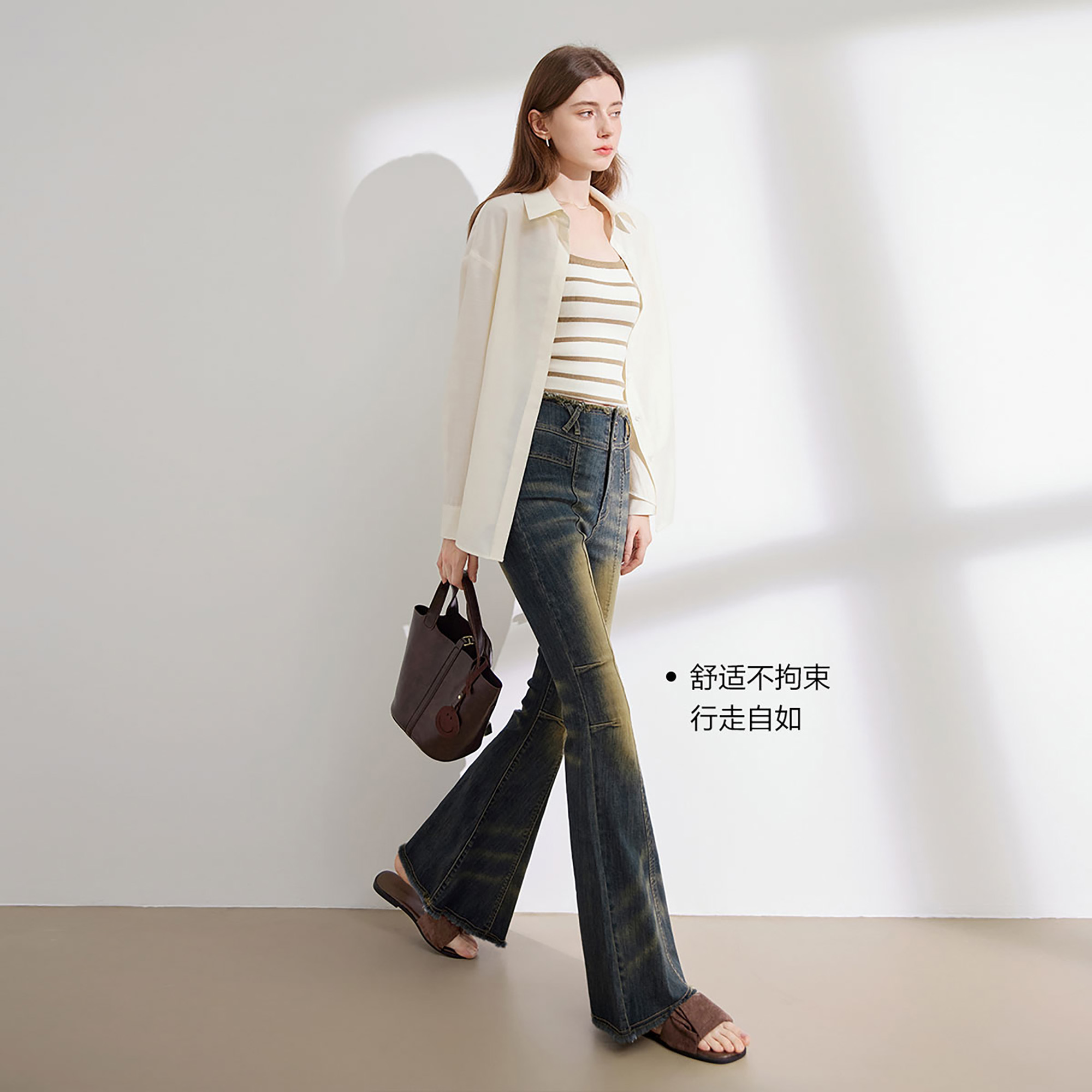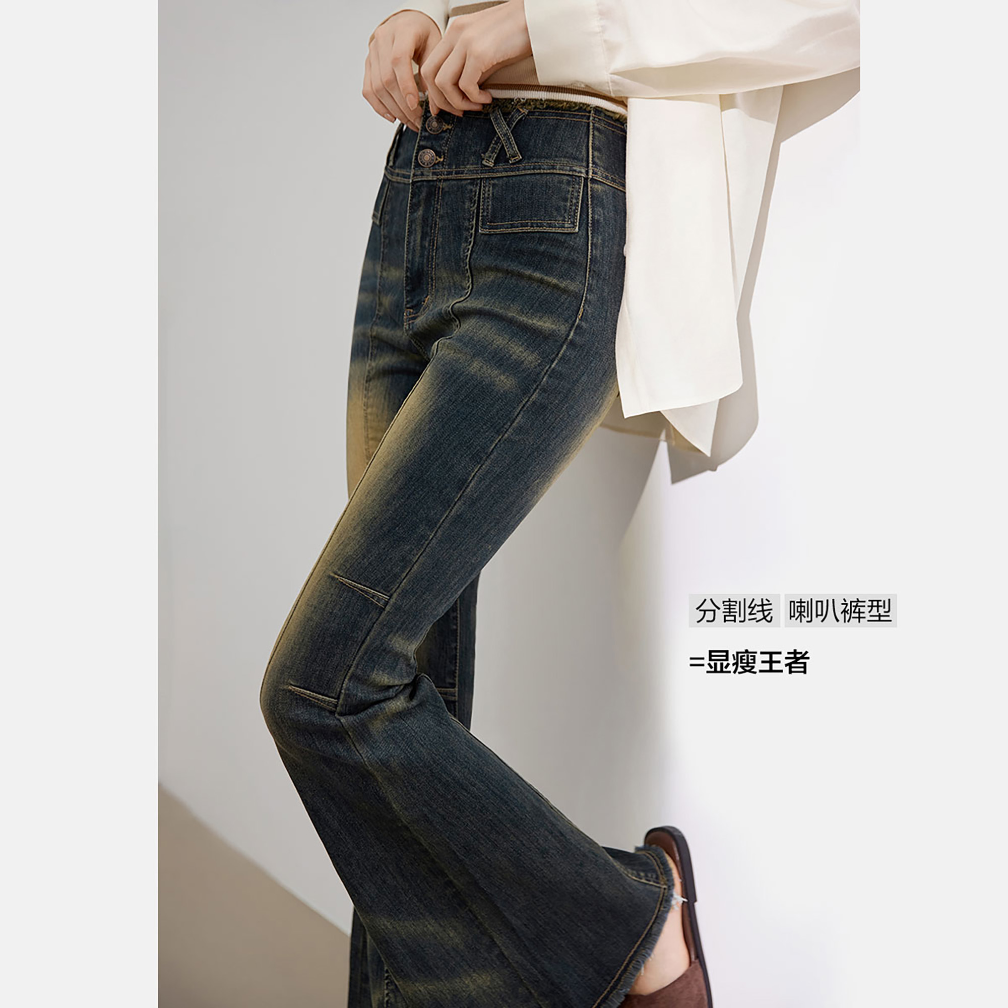 显瘦毛边裤 做旧撞色修身 子女 女夏2025新款 MEETLADY复古微喇牛仔裤