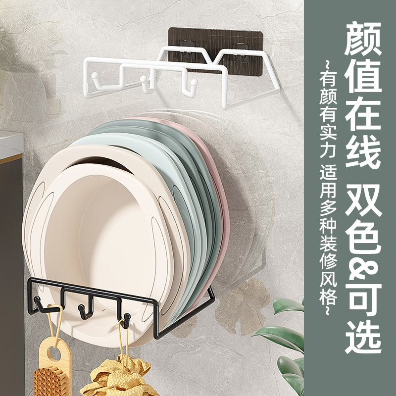 可折叠卫生间置物架免打孔浴室脸盆挂钩壁挂式 盆子收纳架挂盆神器