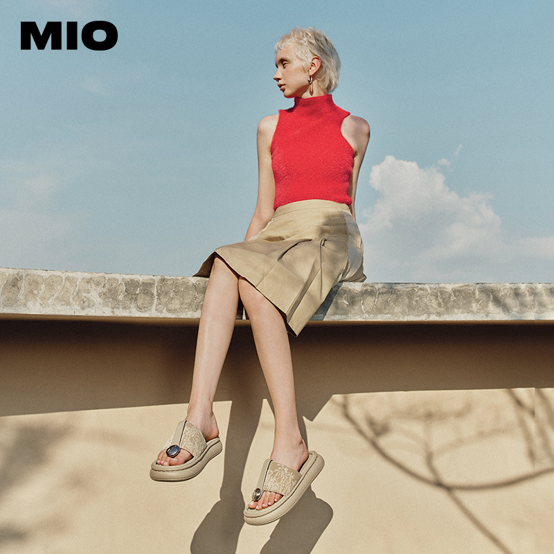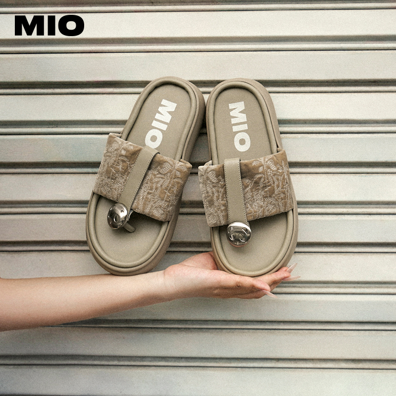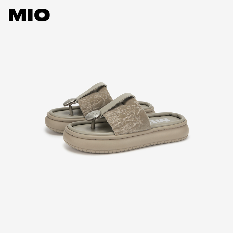 国风绒感厚底人字拖 潮流复古夹趾拖鞋 MIO米奥夏季 中跟拖鞋