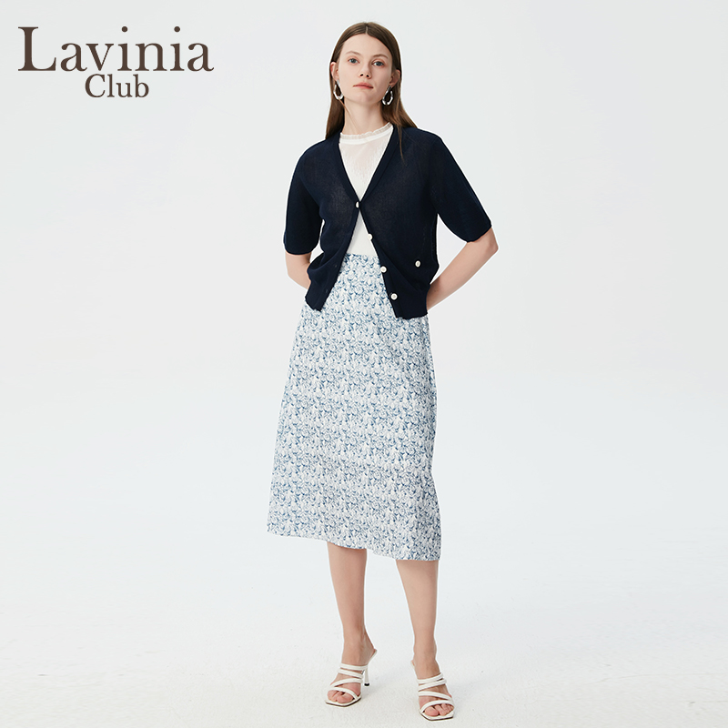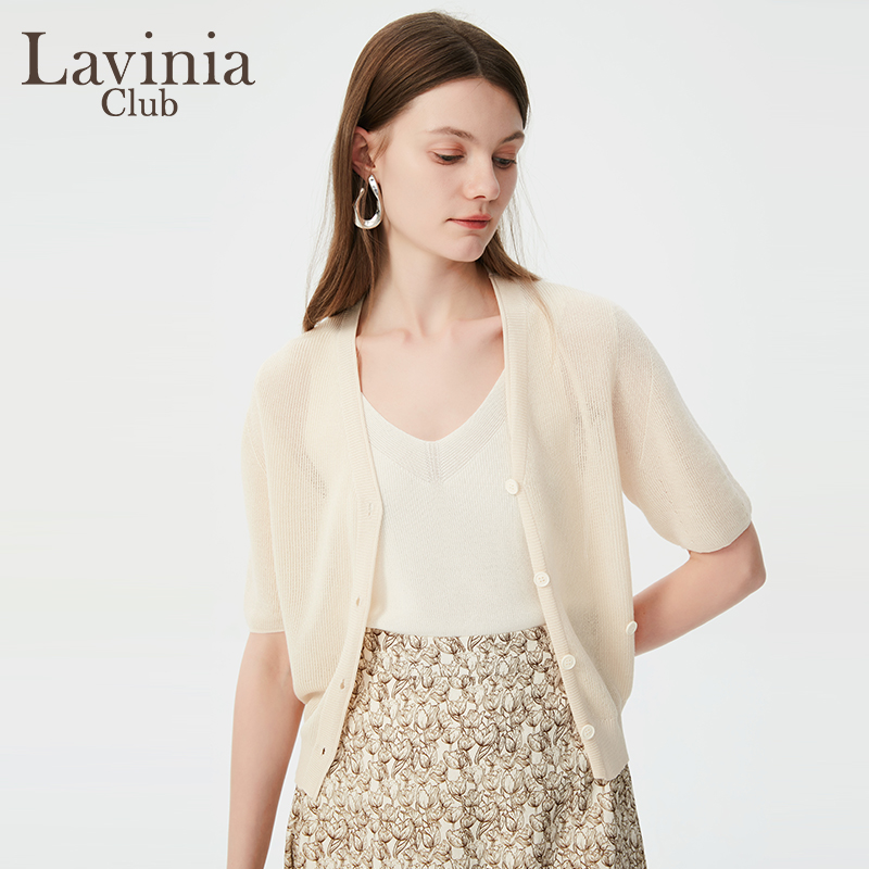 针织衫 条纹短袖 长袖 开衫 毛衣外套 RARN2025秋装 两件套圆领修身 新款