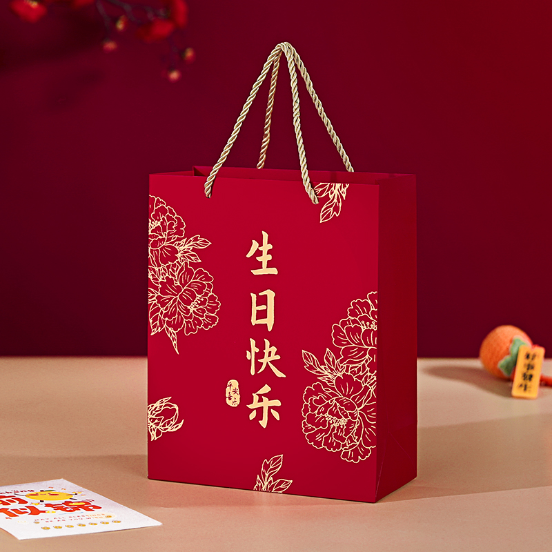 生日快乐手提袋满月周岁十岁伴手礼袋子喜糖包装 盒空盒大号礼品袋