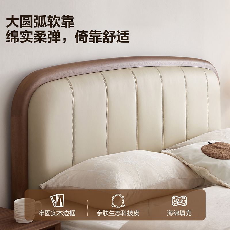 全友家居新中式 实木脚家具 软包床主卧室乌金木纹双人床架2025新款