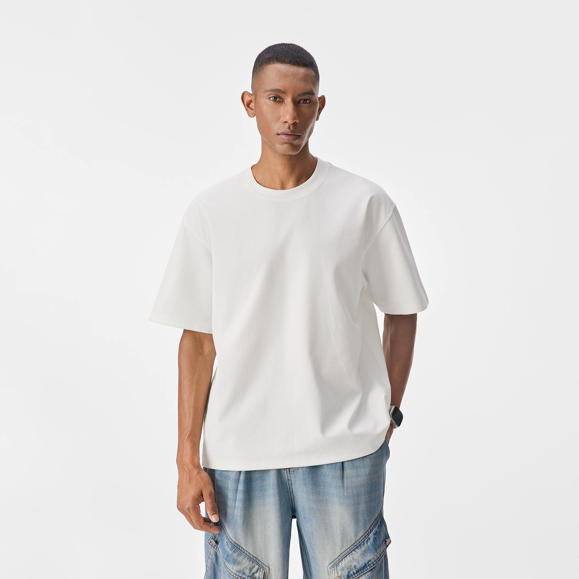 BODYDREAMBM短袖 针织T恤圆领罗纹肌理感落肩宽松休闲上衣 男夏季