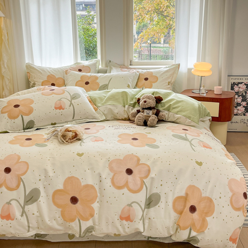 无印良品全棉床单学生宿舍纯棉卡通儿童被套秋冬三件套床上用品