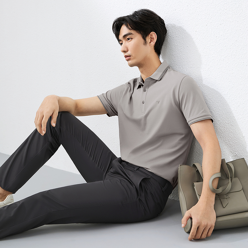 商务翻领长袖 罗蒙男士 POLO衫 2025秋季 打底T恤男 新款 含桑蚕丝