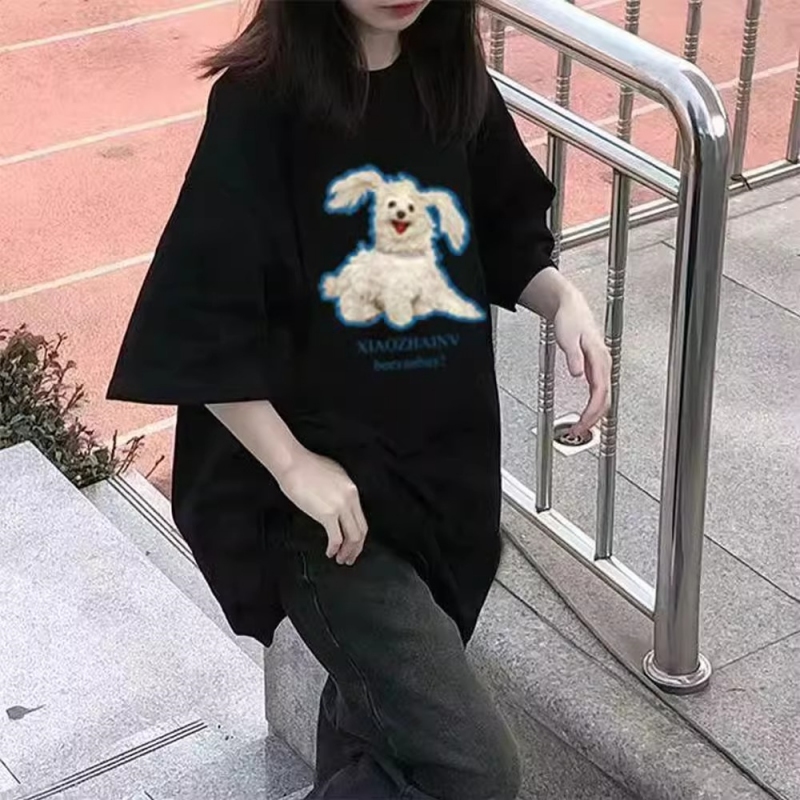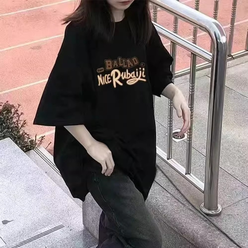情侣半袖 潮牌夏季 宽松大码 黑色t恤女短袖 上衣ins 纯棉oversize美式