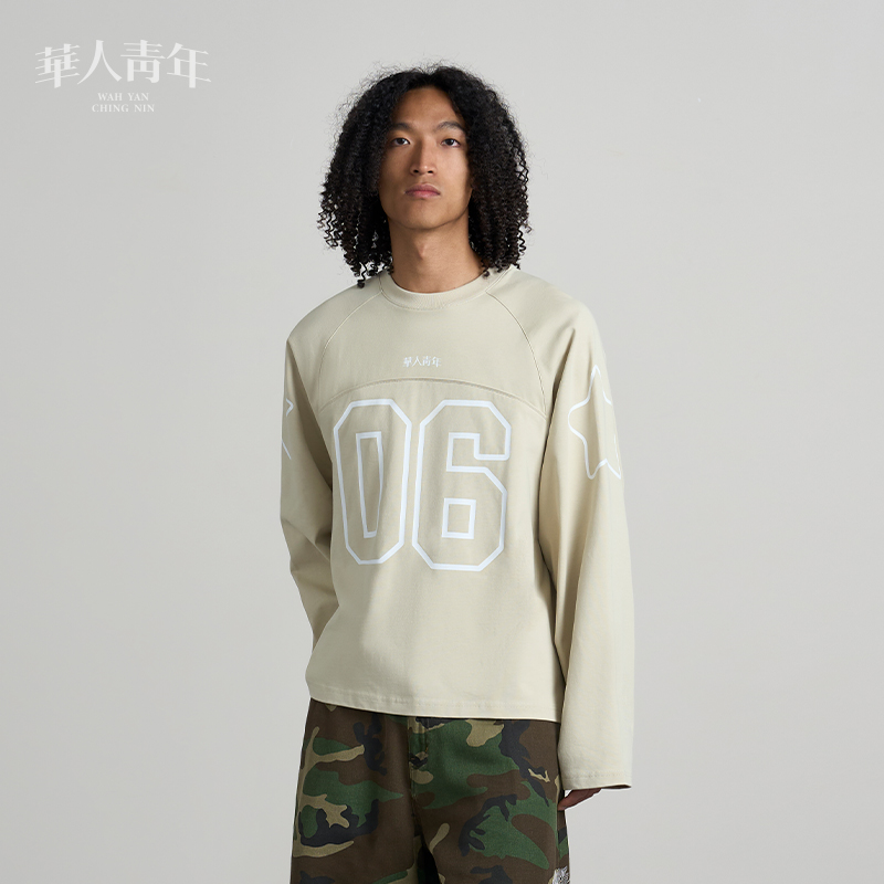 华人青年男女休闲运动拼接长袖 户外训练服上衣 T恤纯棉宽松情侣装