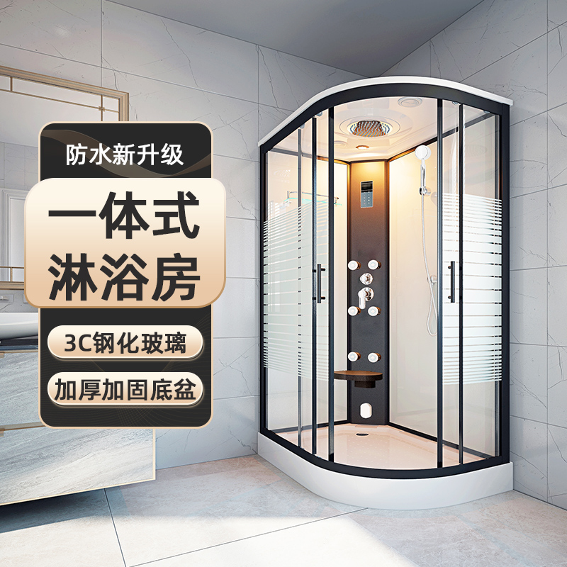 整体淋浴房一体式 家用农村洗澡间沐浴房封闭单人冲凉房浴屏弧扇形