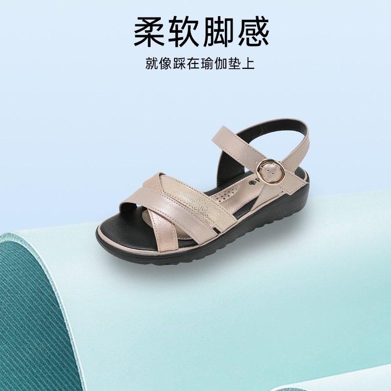 真皮防滑中老年爸爸拖鞋 牛皮休闲外穿沙滩鞋 男2025夏季 老人头凉鞋
