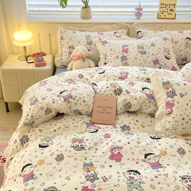 无印良品全棉床单学生宿舍纯棉卡通儿童被套秋冬三件套床上用品
