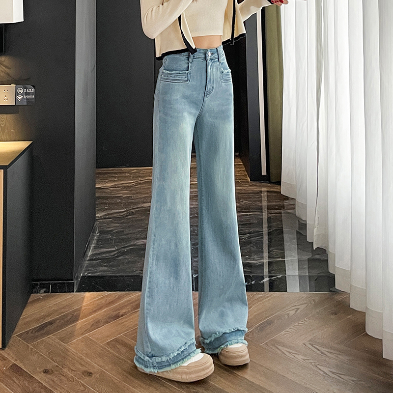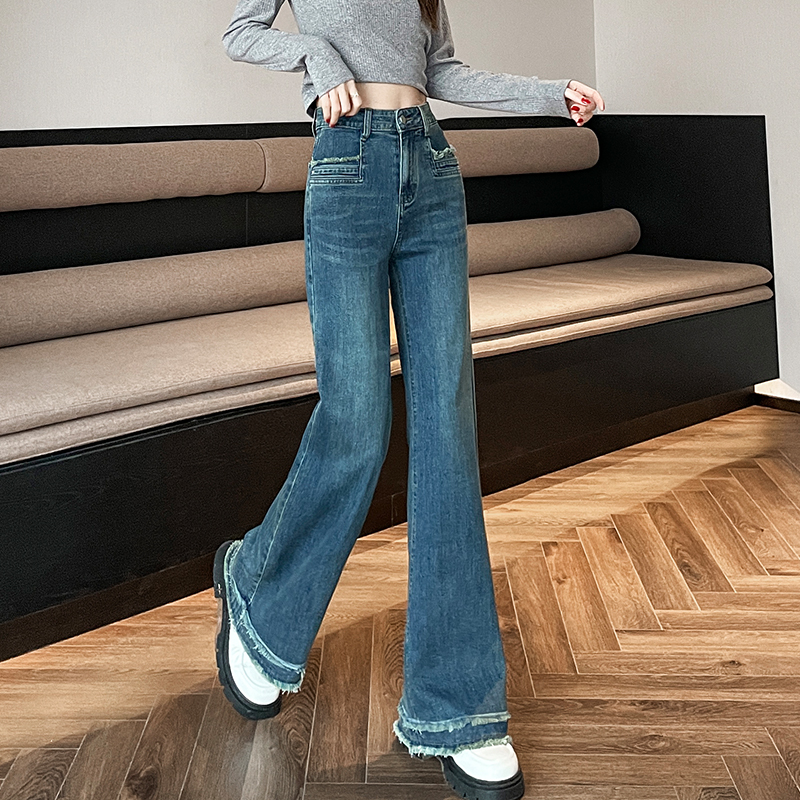 宽松显瘦不贴腿阔腿垂感马蹄喇叭裤 加绒高腰微喇牛仔裤 女2025秋季