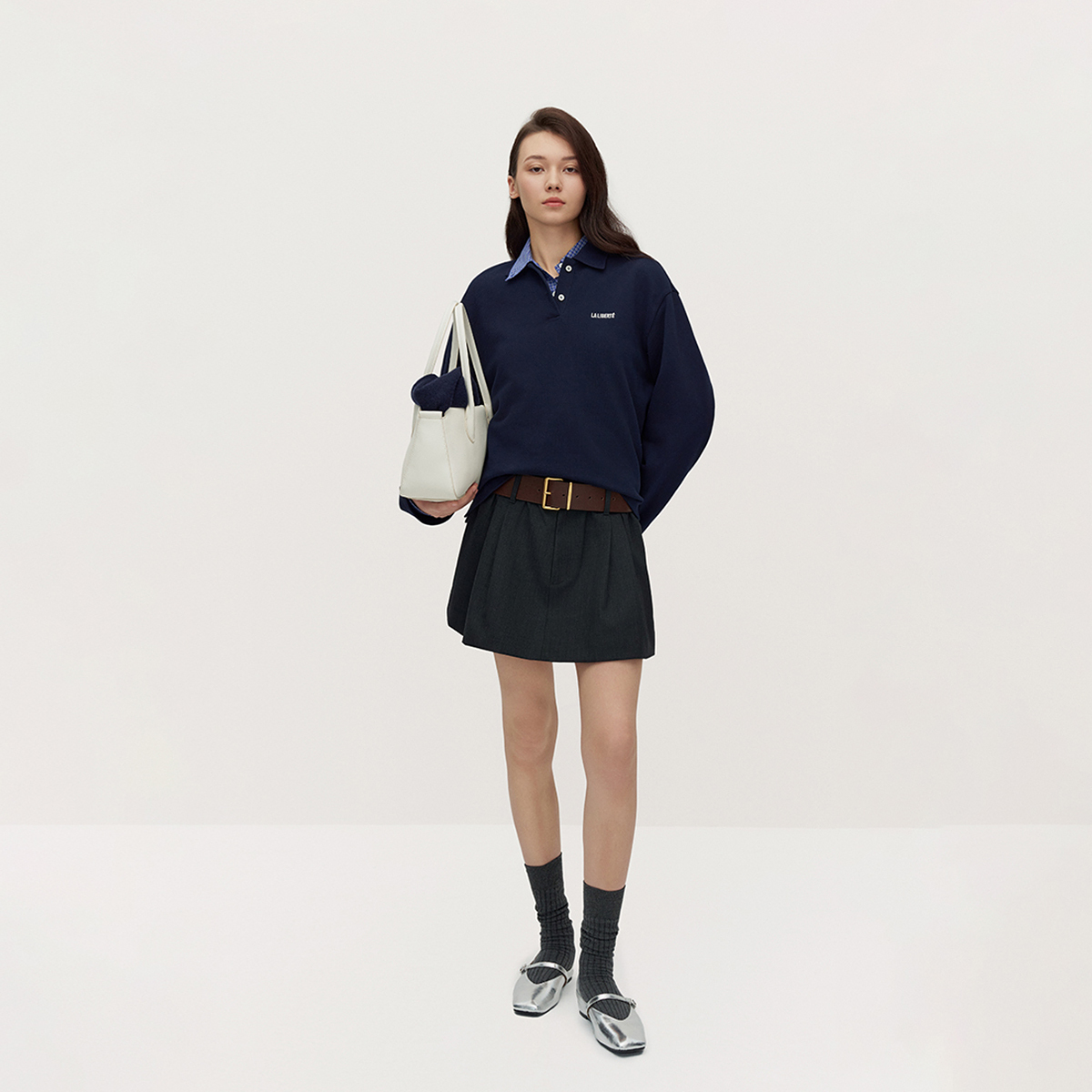 T恤女上衣绣花气质秋冬新品 OCHIRLY欧时力 100%棉Polo领长袖