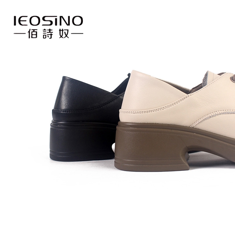休闲深口单鞋 佰诗奴真皮小皮鞋 粗中跟系带牛津鞋 新款 女2025年春季