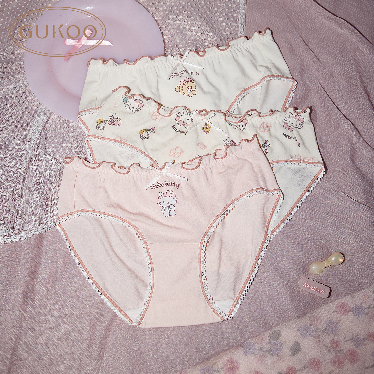 抗菌纯棉裆女士内裤 女春夏HelloKitty联名新款 组合 果壳内裤 Gukoo