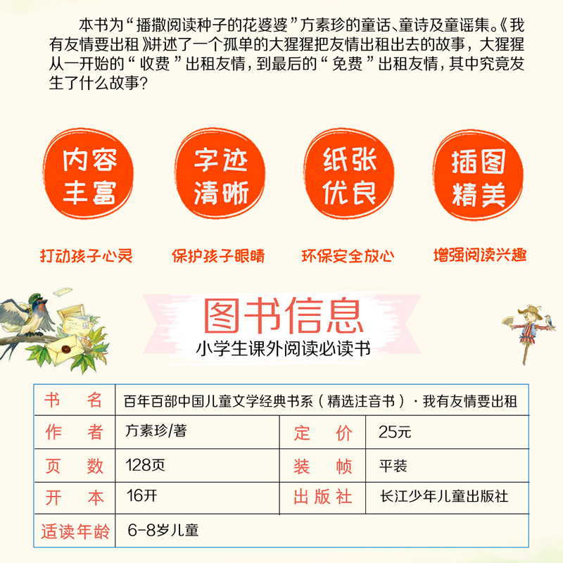 长江少年儿童出版 书系一年级二年级阅读课外书必读老师正版 社三年级 方素珍著百年百部中国儿童文学经典 我有友情要出租注音版