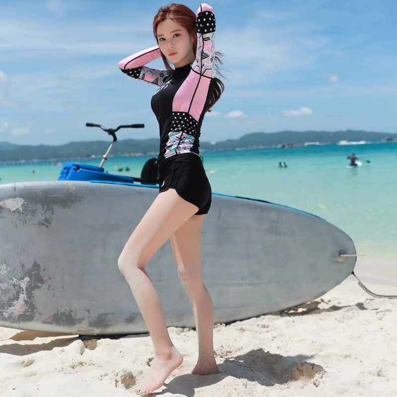 韩国ciellemarin潜水服女沙滩防晒速干游泳衣涤纶分体长袖 漂流冲