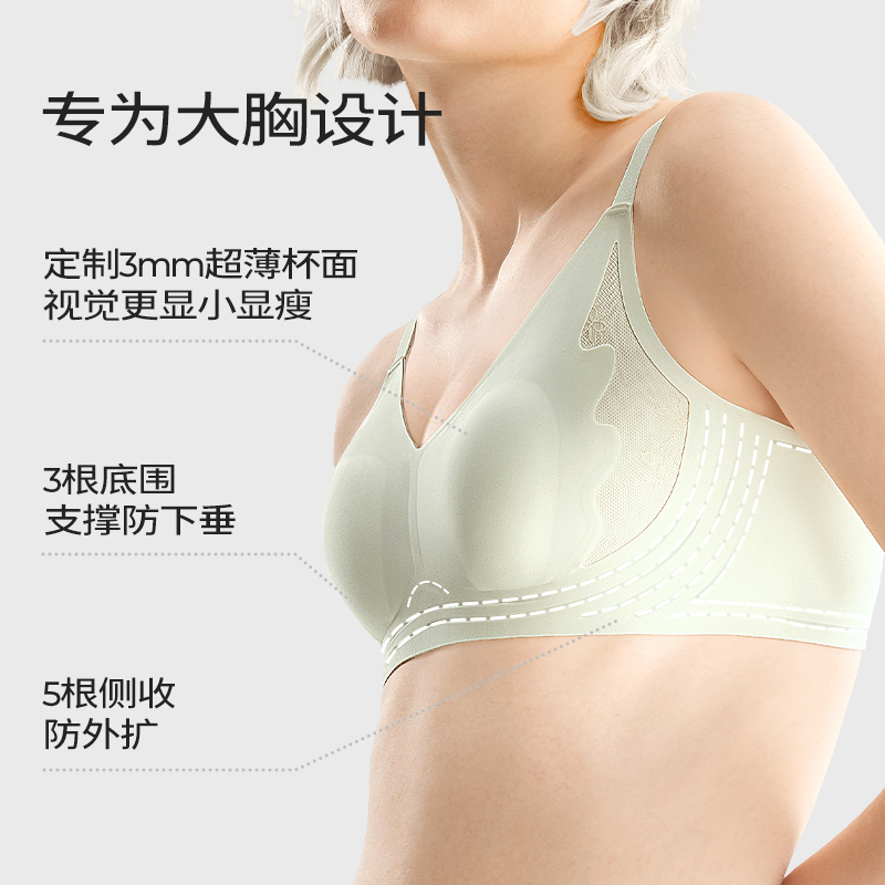舒氧无痕内衣女胸大显小兔耳杯收副乳防下垂2025新款 纯欲蕾丝文胸