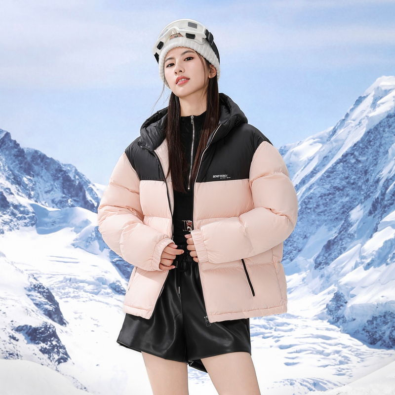连帽时尚 休闲短款 保暖夹克 鸭鸭羽绒服女2025年秋冬新款 王一博同款