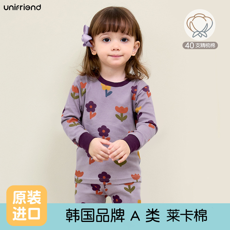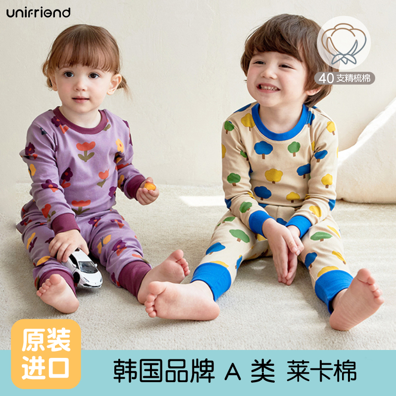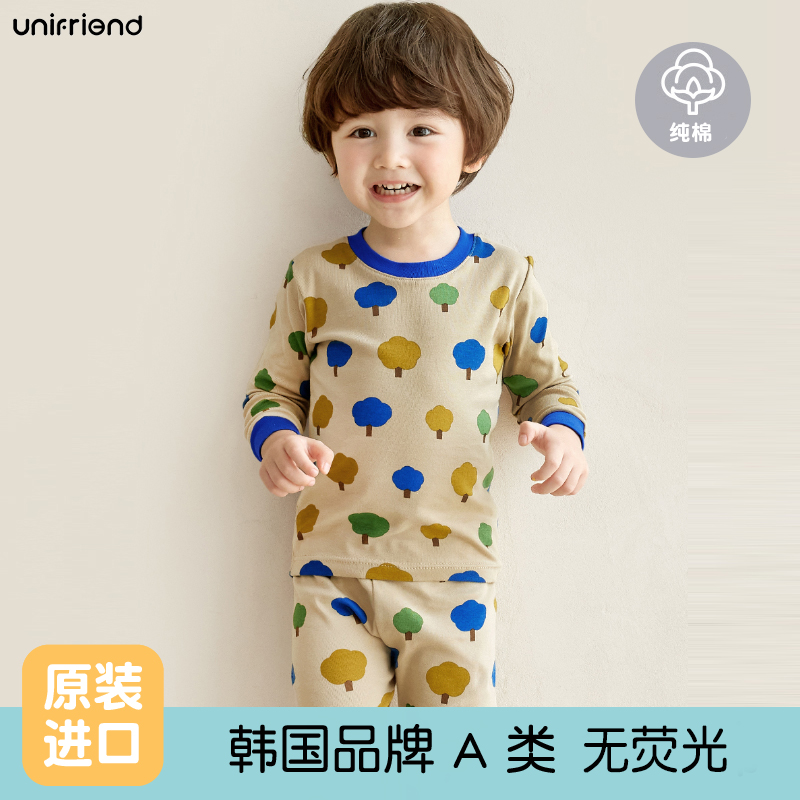 unifriend韩国儿童秋衣秋裤 纯棉男童宝宝睡衣a类家居服 莱卡棉套装