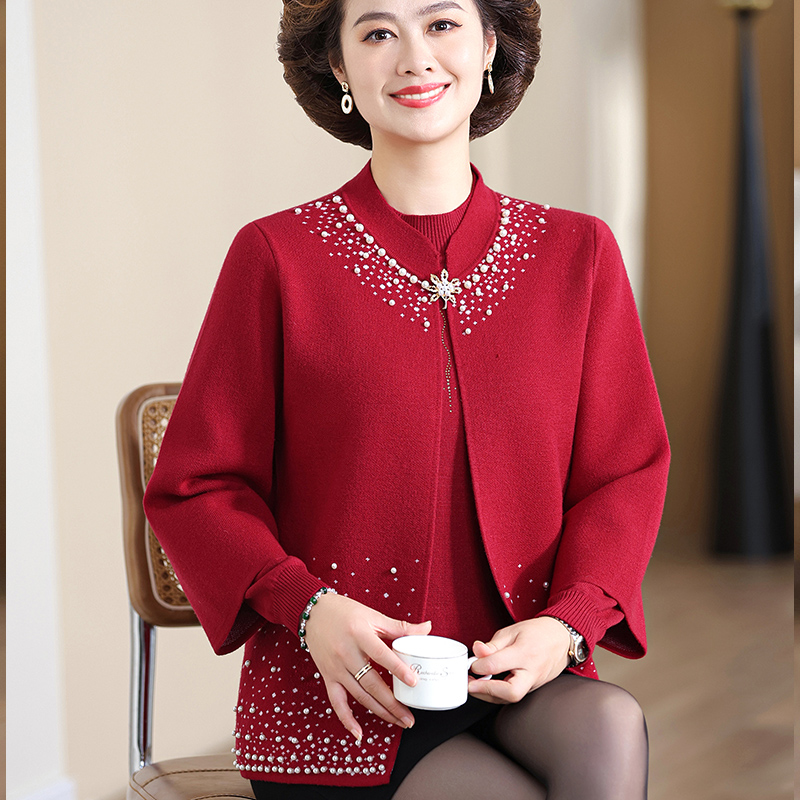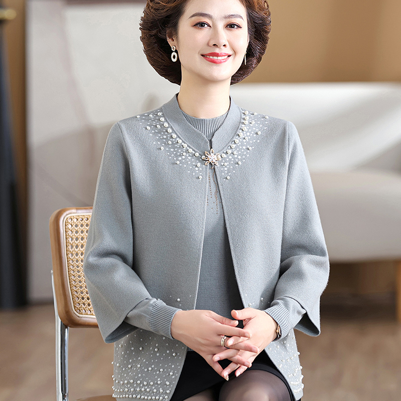 打底上衣中老年人女开衫 针织两件套装 外套 洋气妈妈春秋装 2024新款
