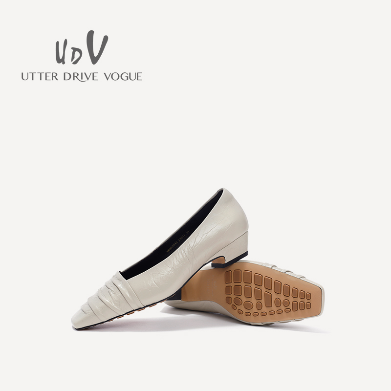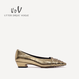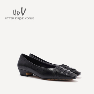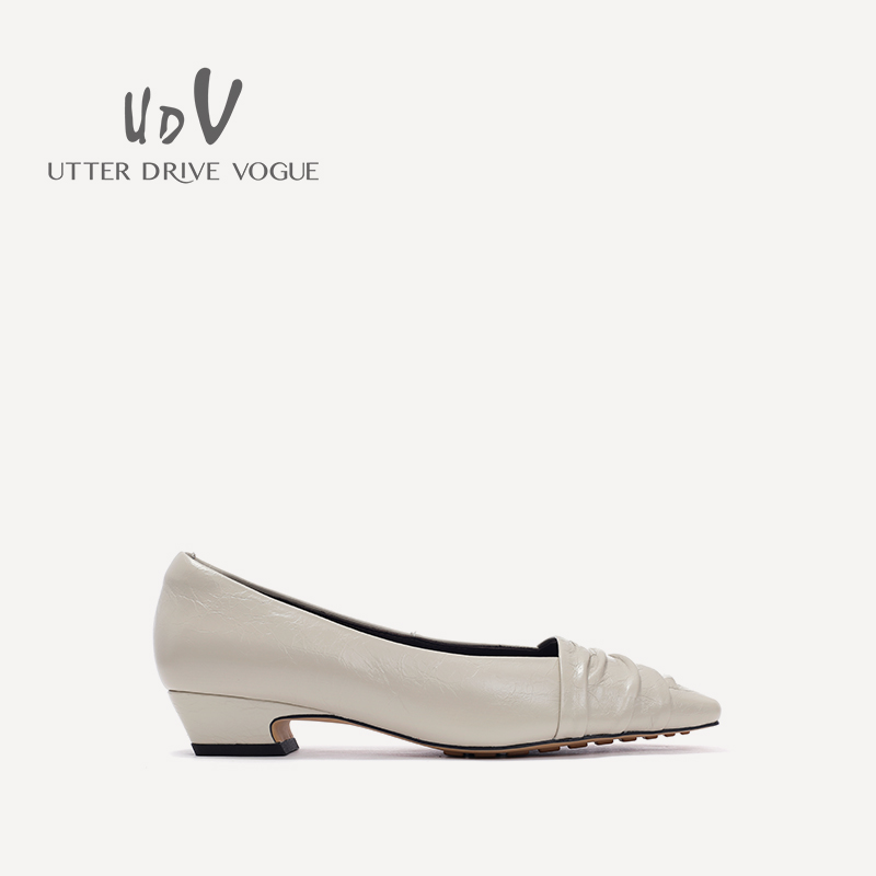 通勤风OL单鞋 尖头低跟女鞋 王妃鞋 UDV2024秋冬真皮抓皱牛皮时装
