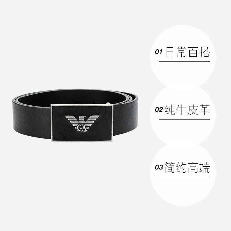 腰带3.5 EMPORIOARMANI阿玛尼Logo标平滑扣牛皮革皮带男款 自营