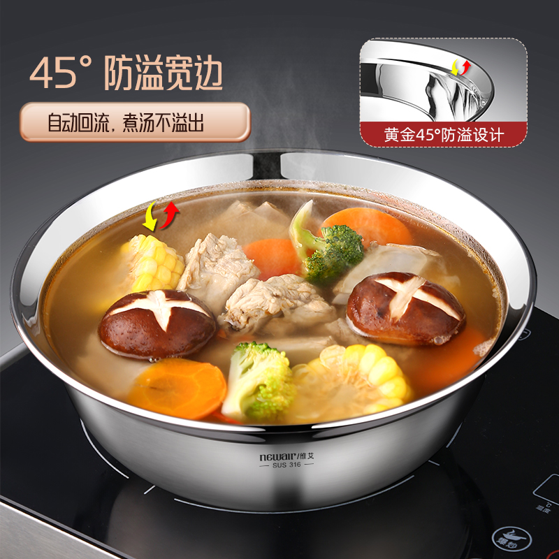 NORTON316不锈钢盆双耳汤盆洗菜盆大汤碗泡面碗沙拉碗家用和面盆