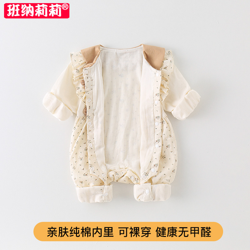 韩系婴儿秋装 连体衣可爱超萌公主哈衣满月百天外出服 女宝宝春秋季