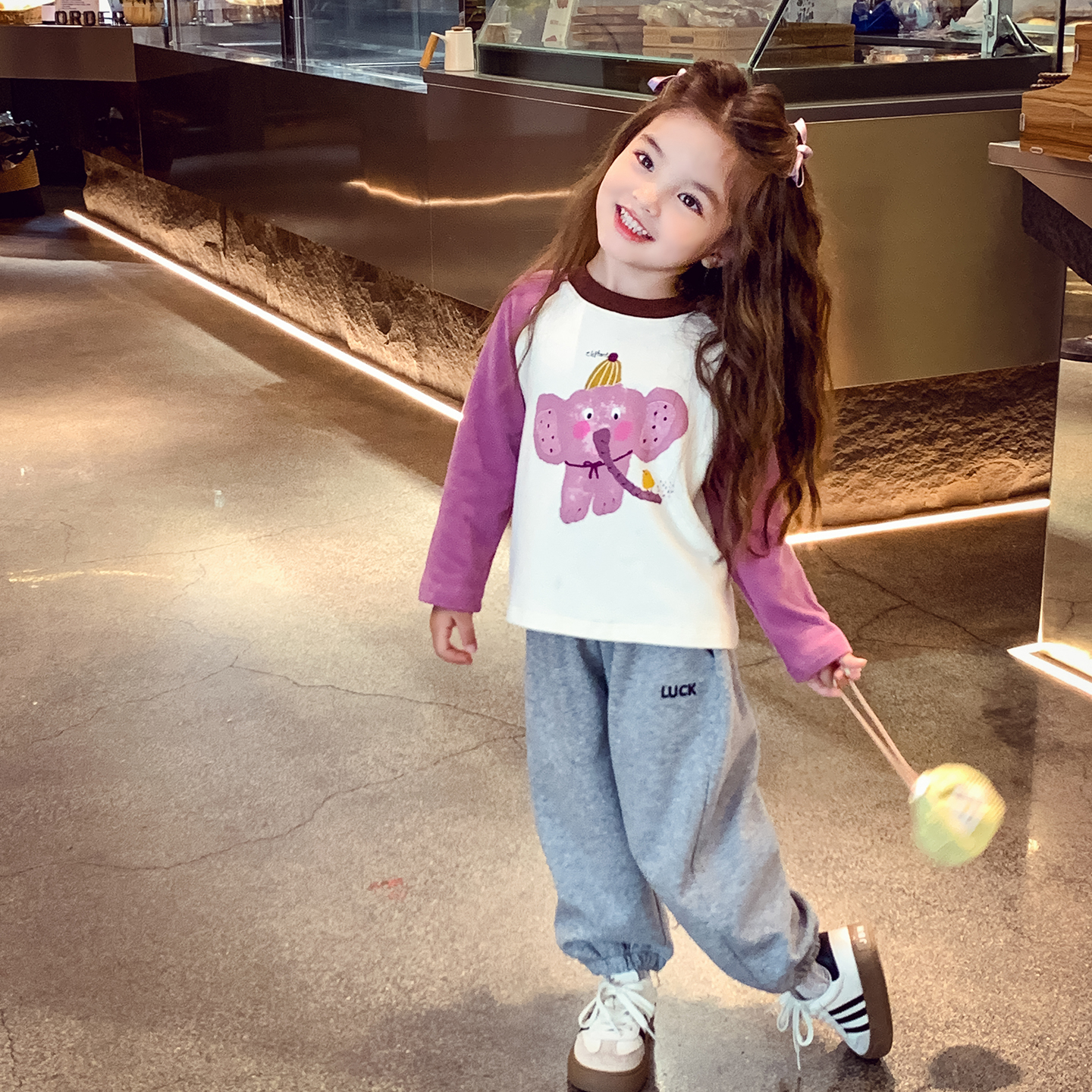 儿童百搭卡通圆领打底衫 韩版 女宝宝上衣 t恤春秋2025新款 女童长袖