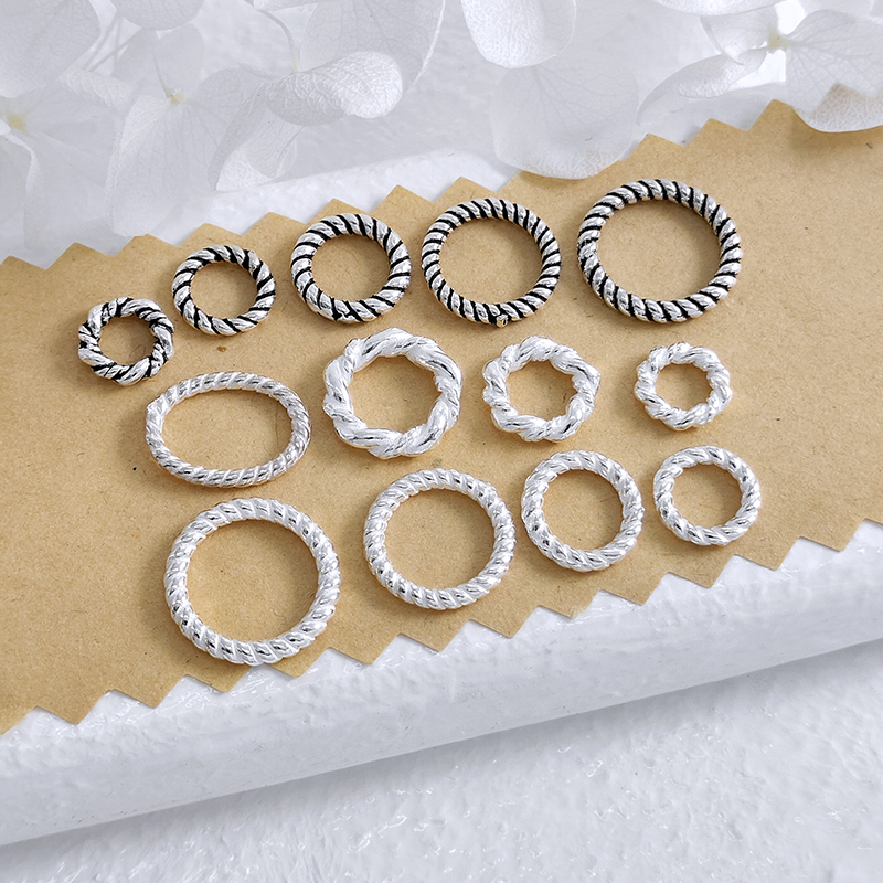 S925银复古泰银粗纹麻花圈细纹盘缠银圈隔片diy文玩手串编绳手串