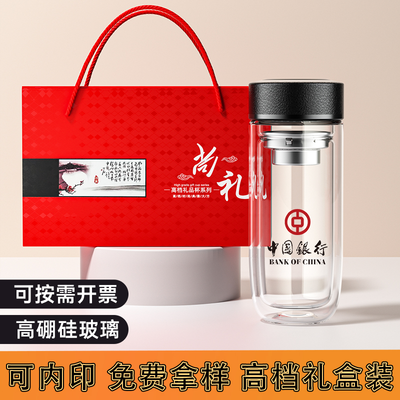 水杯双层玻璃杯定制logo开业活动赠品伴手礼商务杯子免费印字定做