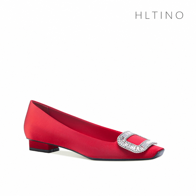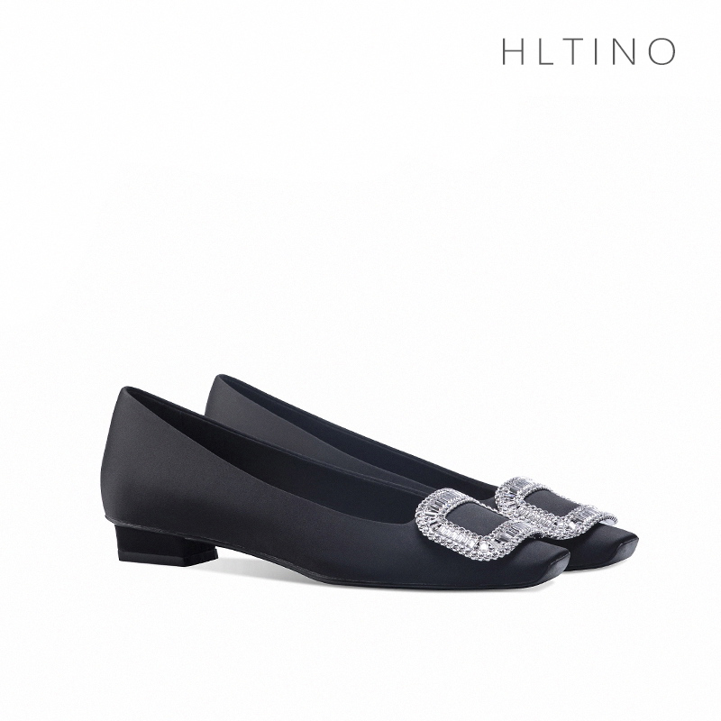 子浅口平底水钻方扣婚鞋 黑色粗跟低跟方头单鞋 女秋 rv法式 2025新款