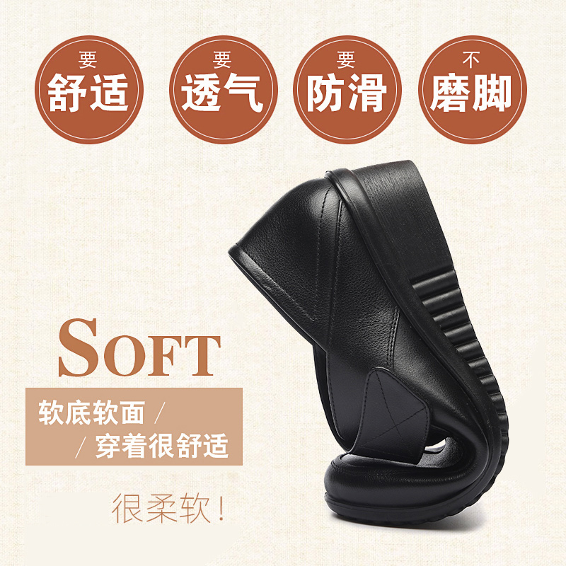 工作女鞋 中老年舒适圆头大码 清仓 坡跟防滑老人皮鞋 真皮软底妈妈鞋