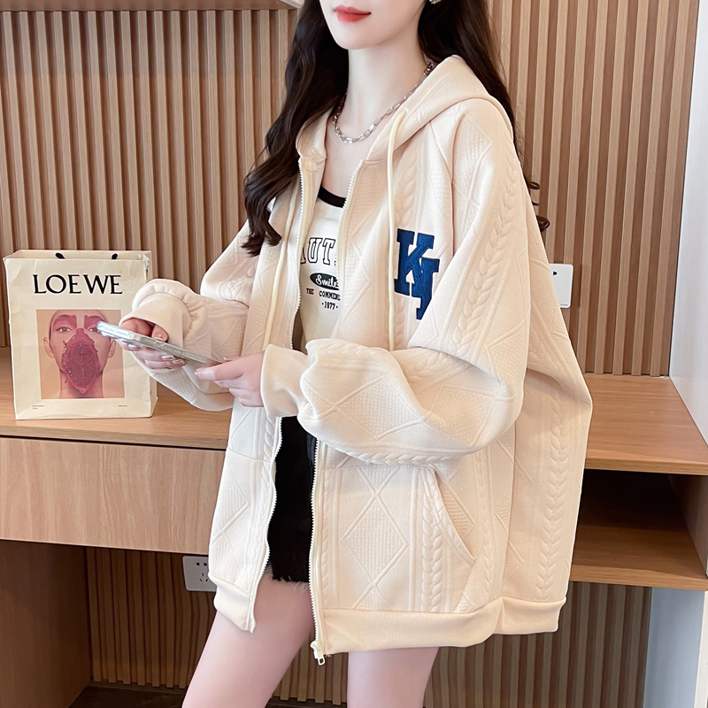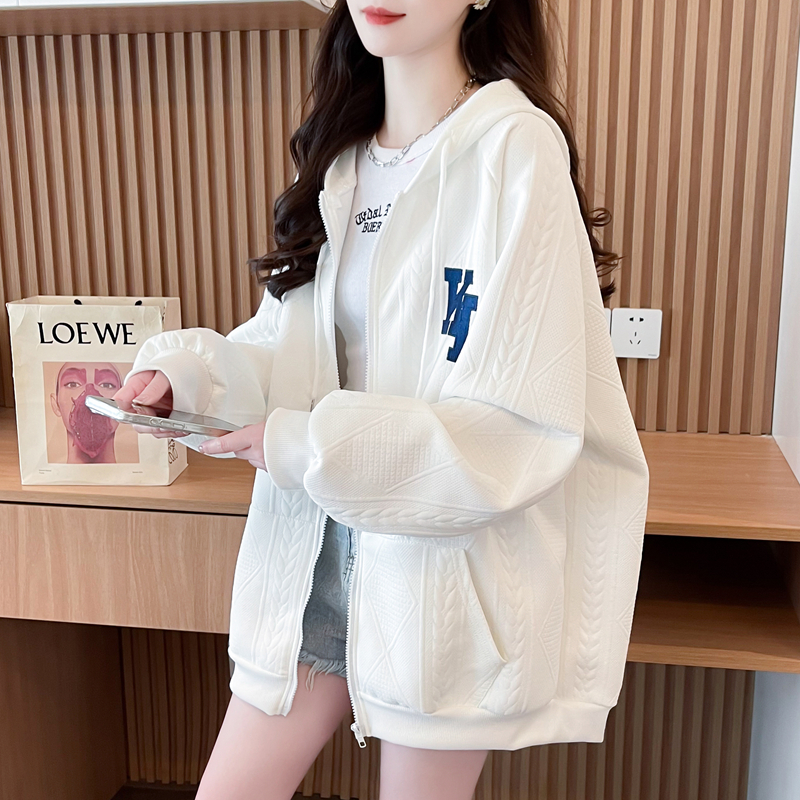 女装 宽松百搭慵懒风开衫 胖mm拉链薄款 韩版 外套 卫衣女春秋新款 大码