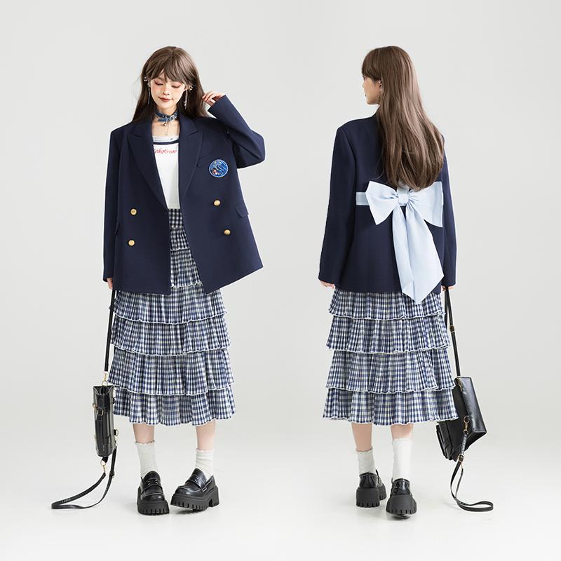TeenieWeenie小熊女装 学院休闲通勤百褶半身时髦格纹毛呢短裙 秋季