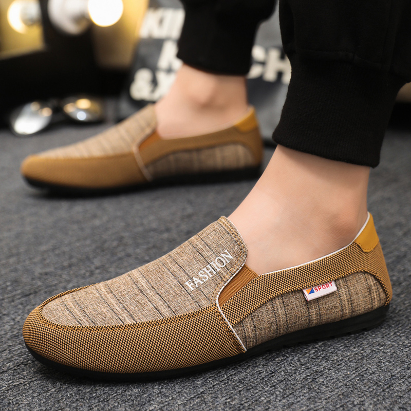 男鞋 男轻便透气鞋 2025新款 一脚蹬休闲豆豆鞋 子 老北京布鞋 帆布鞋