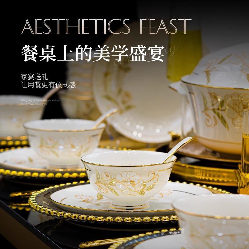 碗碟套装 轻奢高级感景德镇骨瓷餐具碗盘乔迁高档碗筷 家用2025新款