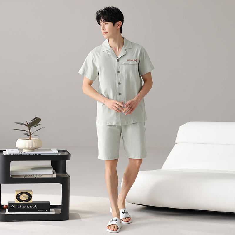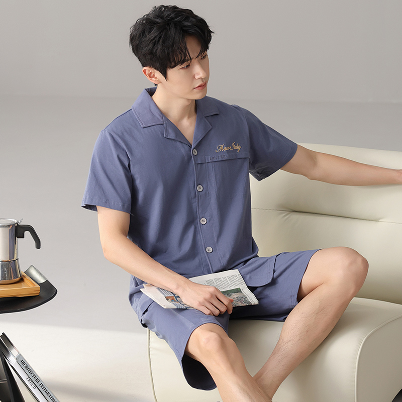 薄款 短袖 家居服套装 2025新款 男士 夏季 开衫 玛伦萨纯棉睡衣男款 短裤