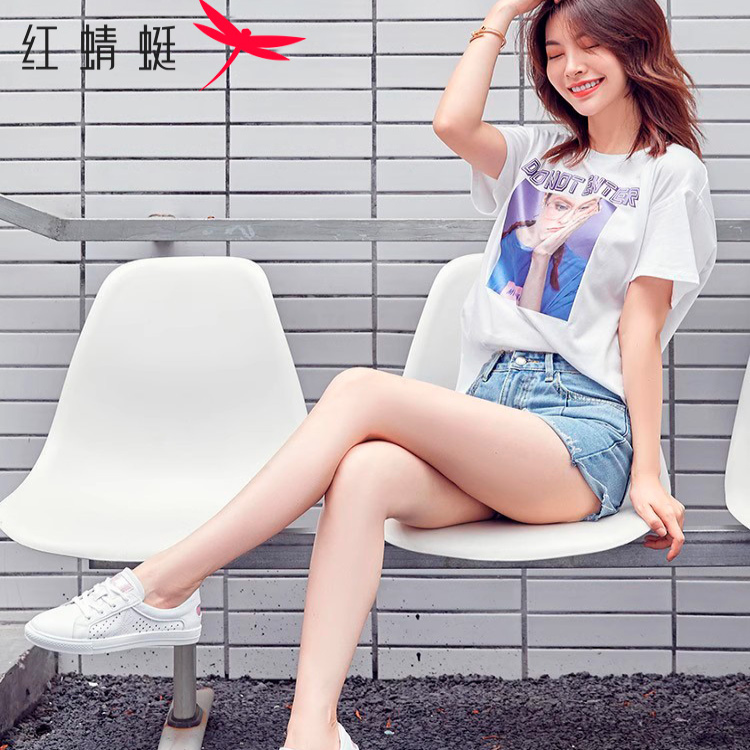 白色鞋 红蜻蜓女鞋 女通勤鞋 镂空透气休闲浅口平底厚底板鞋 子 子薄款