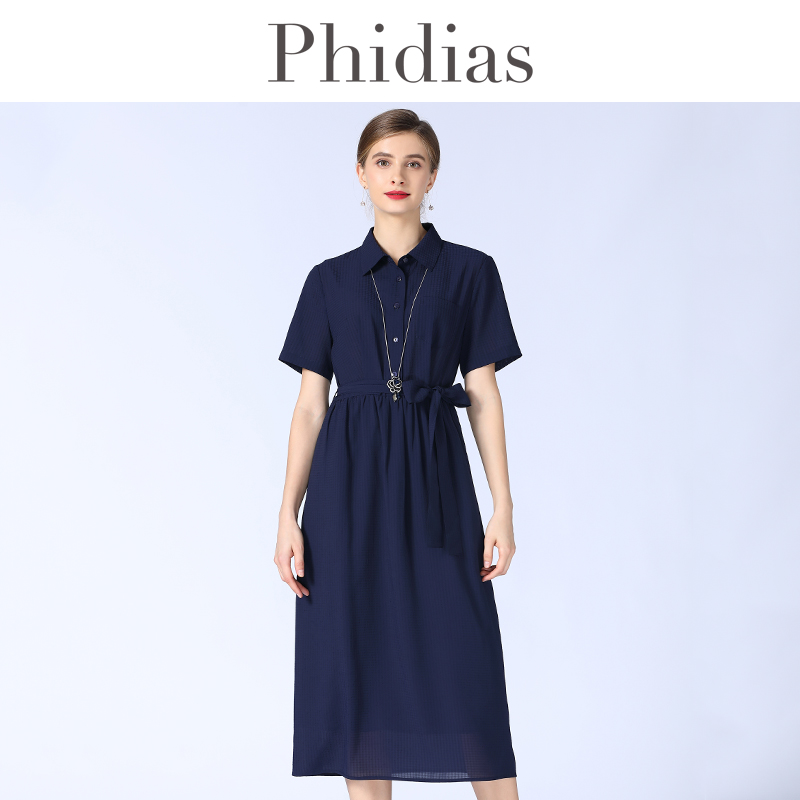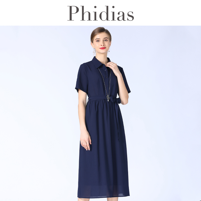 圆领连衣裙13465302 优雅通勤腰带收腰泡泡袖 佐丹奴裙子女夏季 新款