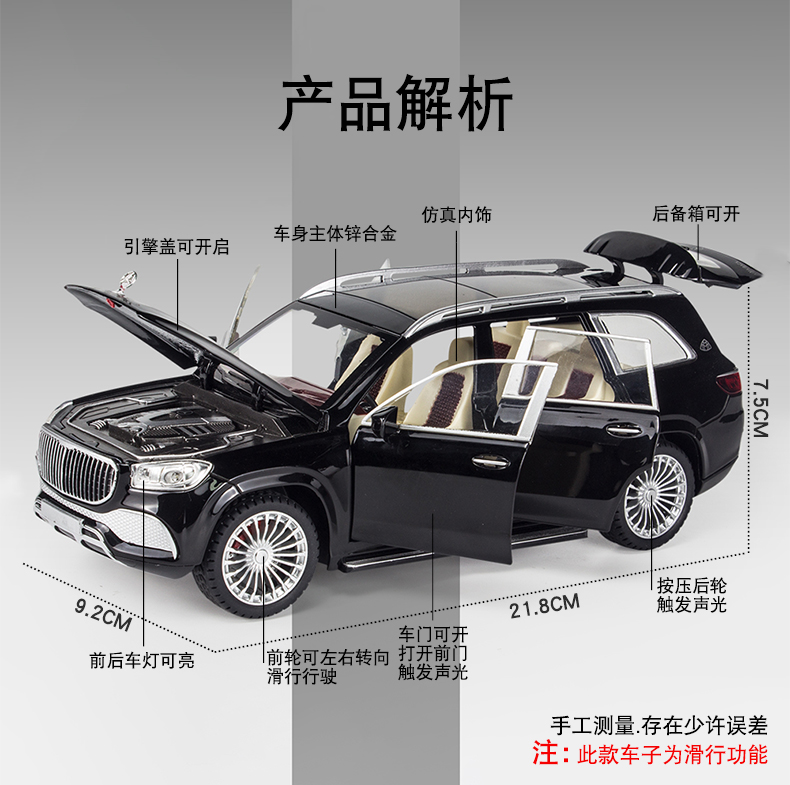 仿真1 24迈巴赫GLS600合金汽车模型声光越野六开跑车收藏金属摆件