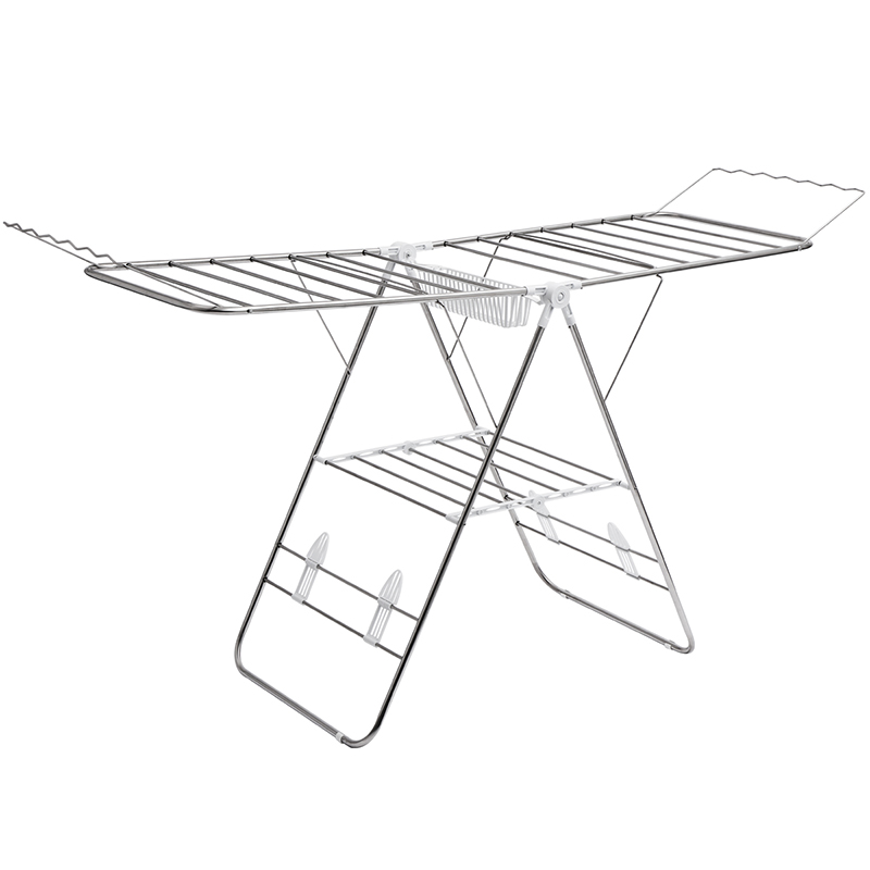 欧润哲 落地折叠室内翼型晾衣架带收纳篮凉衣架 阳台不锈钢晒衣架