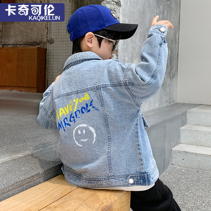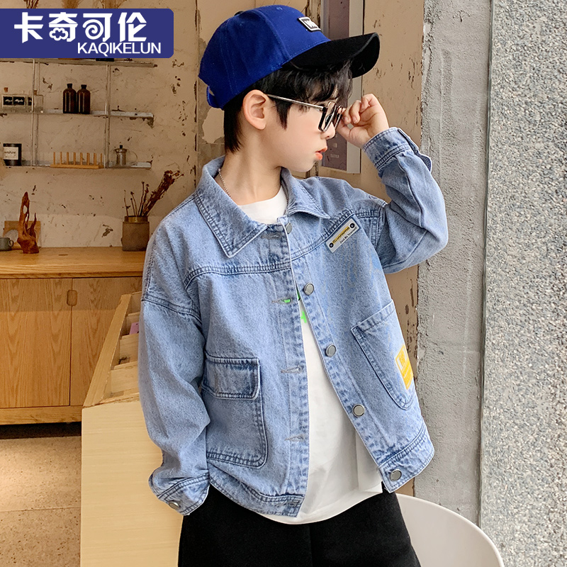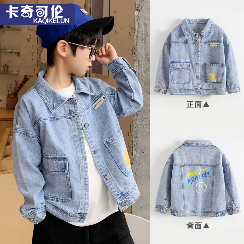 衣服男孩洋气潮款 儿童上衣男大童春秋款 秋装 男童牛仔外套2025新款