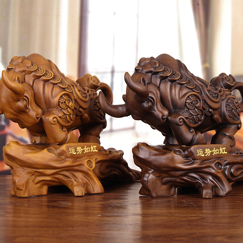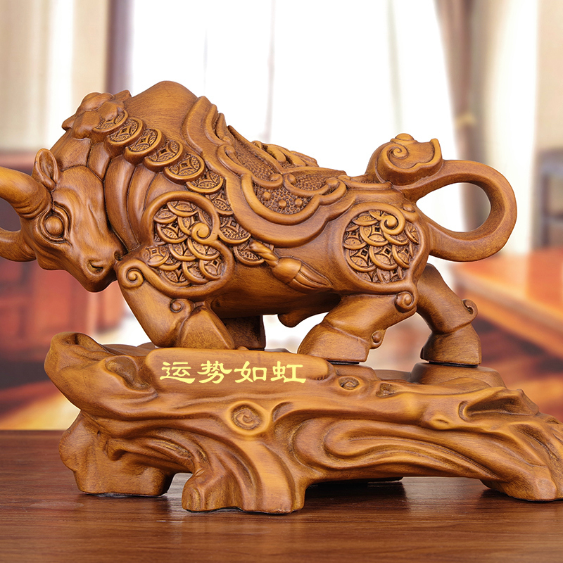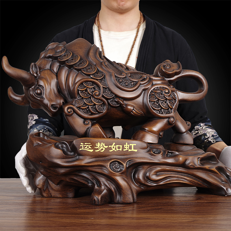实木雕牛摆件招财牛木质手工艺品客厅办公室装 饰开业商务礼品高档