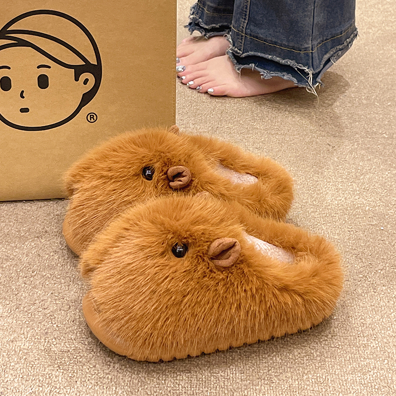 可爱居家居室内情侣加绒加厚底毛毛拖鞋 男士 2025新款 冬季 女 棉拖鞋
